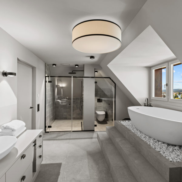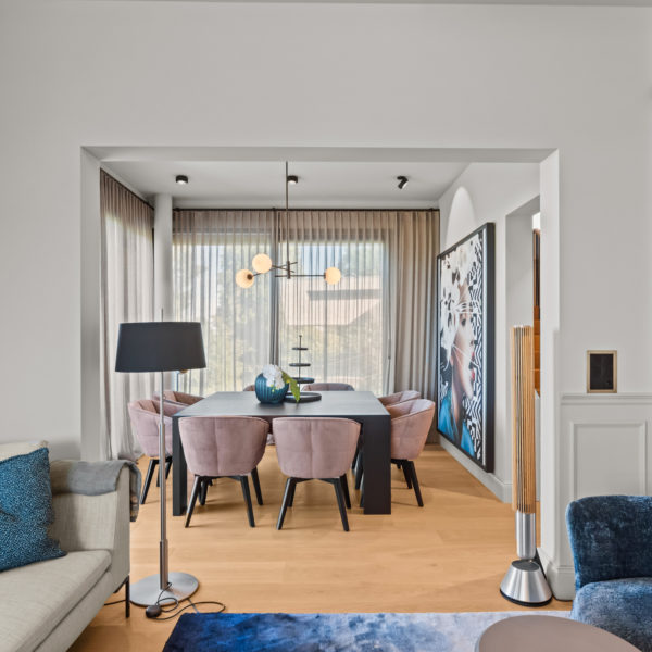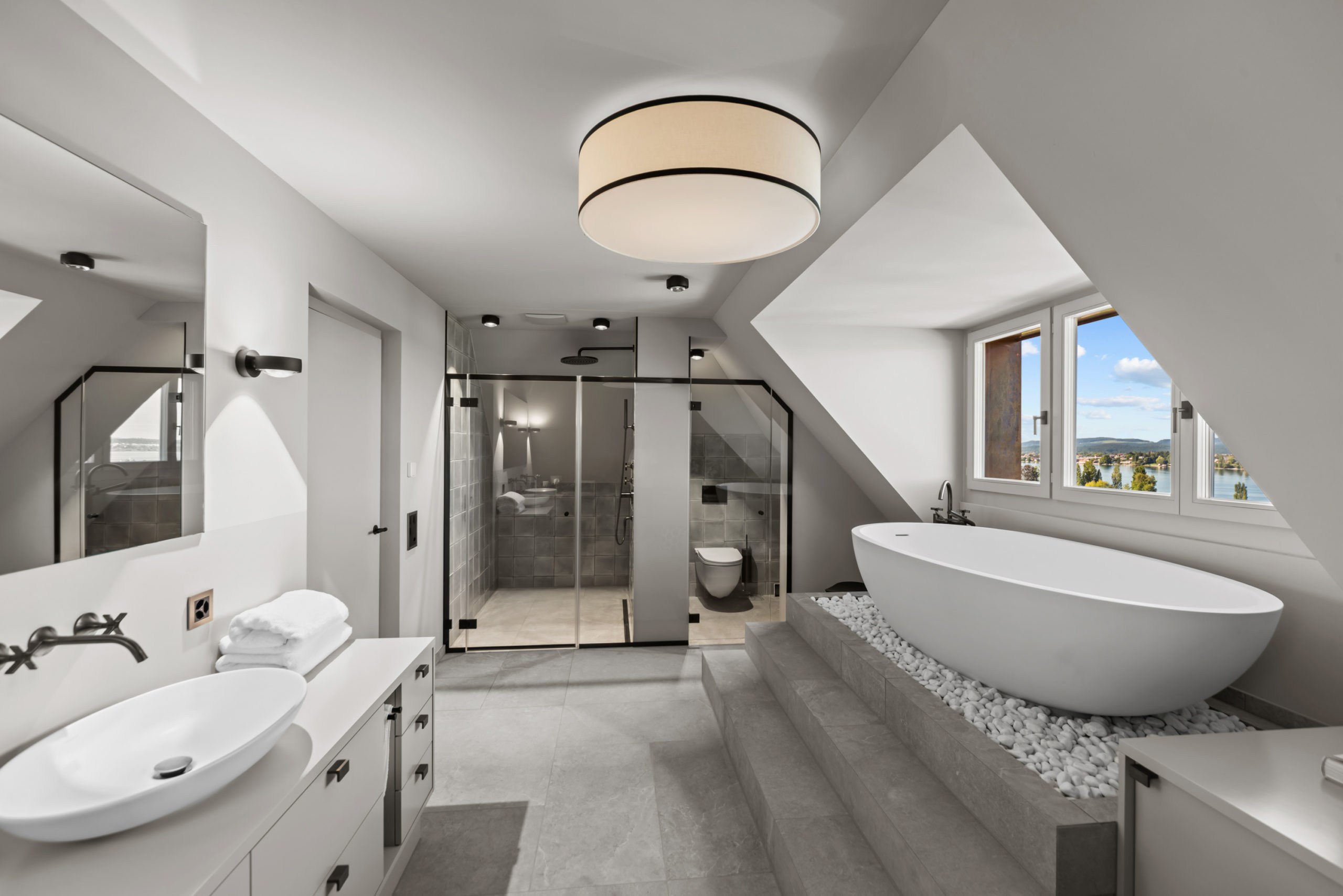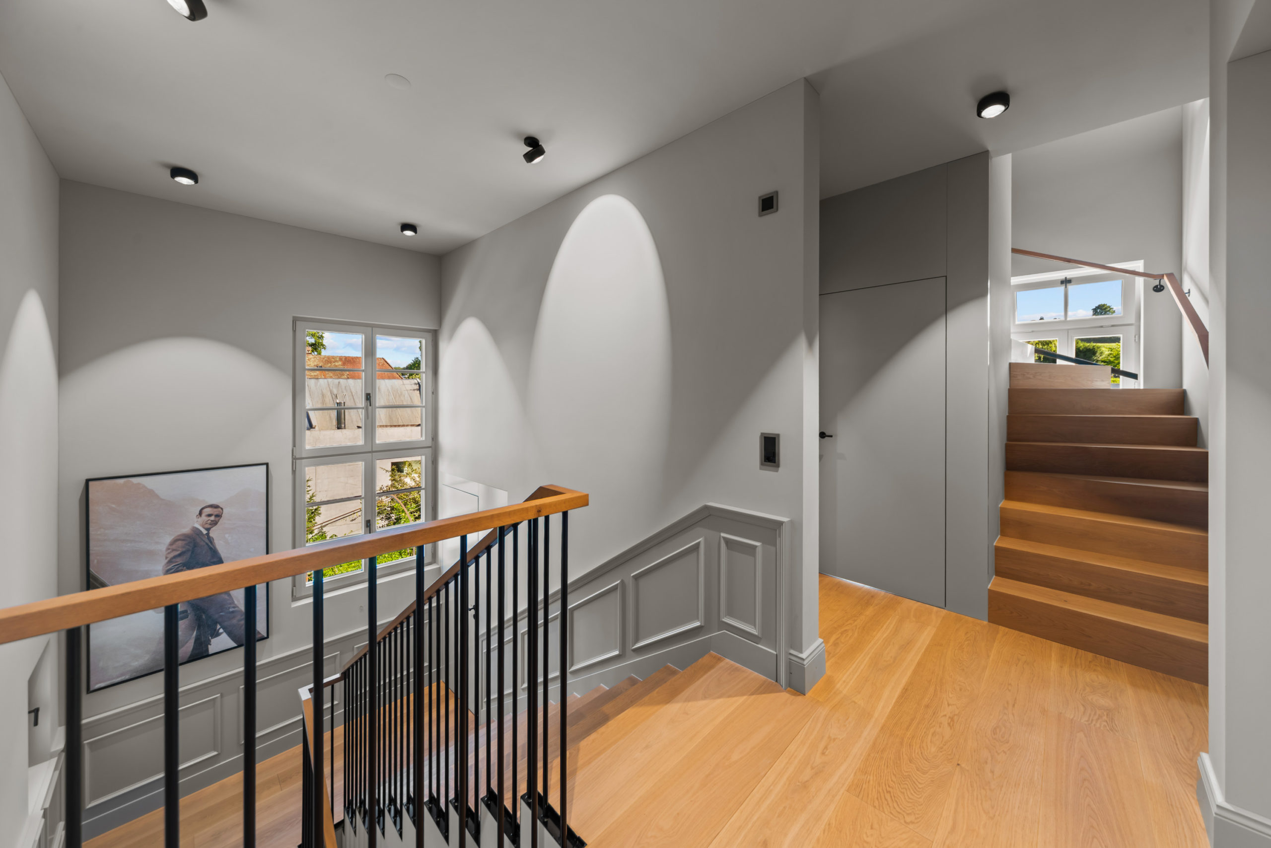 Die im Laufe der Zeit in die Jahre gekommene Villa wurde umfassend und mit höchstem Qualitätsanspruch saniert sowie umgebaut. Rund um einen zentral gelegenen Aufzug gruppieren sich alle Wohn- und Schlafräume. Im Erdgeschoss öffnet sich ein grosszügiger Wohn-, Koch- und Essbereich, das Obergeschoss beherbergt die Schlafräume, während sich im Dachgeschoss der Master-Bedroom mit Ankleide und eigenem Bad befindet. Abgerundet wird das Raumangebot durch einen Wellnessbereich im Untergeschoss mit Sauna und direktem Zugang zur Gartenanlage mit Aussenpool.